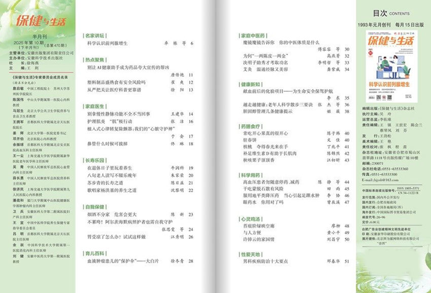在信息爆炸的時代,健康謠言與偽科學層出不窮,《保健與生活》始終將內容的科學性與權威性視為生命線。雜志背靠國內外頂尖的醫學專家委員會,每一篇文章都經過嚴格的同行評議與事實核查,從流行病學數據到臨床醫學證據,從營養學基礎到中醫藥理論,均堅持循證醫學原則,確保信息準確無誤。
