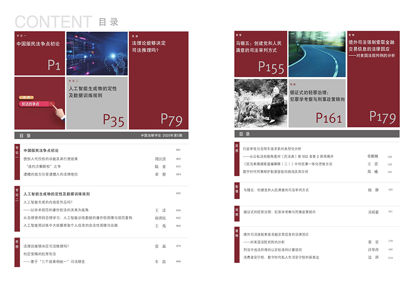 在法治中國建設不斷推進的時代背景下,《中國法律評論》如同一盞明燈,照亮了法律人前行的道路。自2014年創刊以來,這本雙月刊不僅以權威的姿態屹立于法學期刊之林,更以開闊的視野和貼近生活的表達,為讀者帶來了富有現實溫度與思想深度的內容。它不僅是一本雜志,更是一個連接理論與實踐、學者與實務工作者的思想平臺。