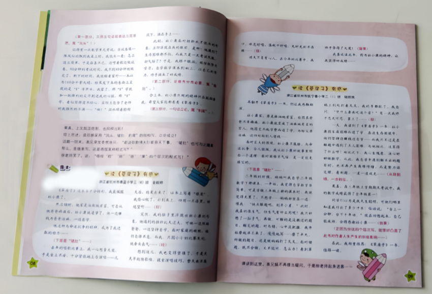 它"更輕松",是因?yàn)閷?xiě)作從任務(wù)變成了游戲。誰(shuí)說(shuō)學(xué)作文一定要正襟危坐?雜志每期設(shè)置"腦洞大開(kāi)"創(chuàng)意挑戰(zhàn),如"用三種顏色寫(xiě)一個(gè)春天""讓標(biāo)點(diǎn)符號(hào)當(dāng)主角""把古詩(shī)改寫(xiě)成偵探故事",這些趣味命題瞬間點(diǎn)燃孩子的表達(dá)欲。雜志還首創(chuàng)"作文劇本殺",將敘事技巧融入角色扮演,孩子在破解案件的過(guò)程中不知不覺(jué)掌握了懸念設(shè)置、人物塑造和伏筆埋設(shè)。沒(méi)有考試壓力,沒(méi)有字?jǐn)?shù)壓迫,只有"你的作品上刊了"的驚喜稿費(fèi),和來(lái)自全國(guó)小讀者的點(diǎn)贊留言。這種正向激勵(lì),讓寫(xiě)作從"要我寫(xiě)"華麗轉(zhuǎn)身為"我要寫(xiě)",連最頭疼作文的孩子都會(huì)主動(dòng)翻開(kāi)筆記本。