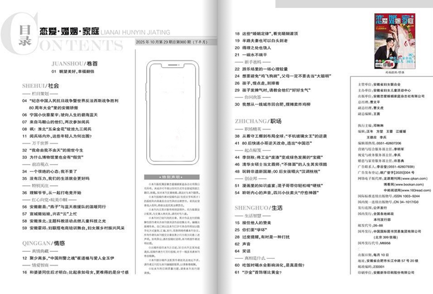 《戀愛·婚姻·家庭》婚姻經營板塊是雜志的重中之重。"婚姻診所"邀請資深婚姻家庭咨詢師為讀者答疑解惑,提供可操作性強的建議;"夫妻之道"則從溝通技巧、沖突處理、親密關系維護等角度,幫助夫妻建立健康的互動模式。特別值得一提的是"銀婚金婚"專欄,通過講述長久婚姻背后的故事,傳遞婚姻經營的智慧與堅守的意義。