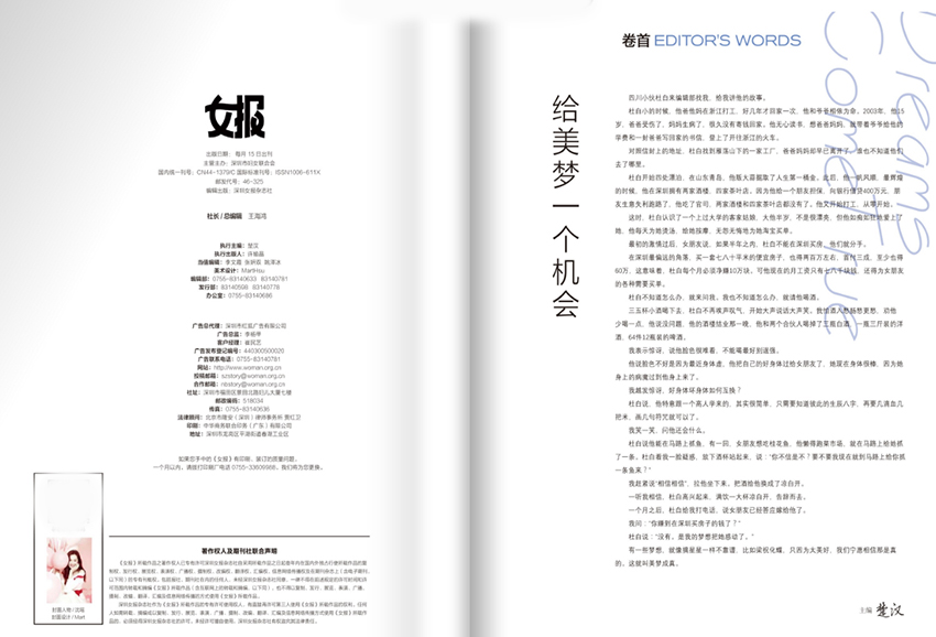 全年一共12期,月刊,單期144頁,彩色銅版紙。出版單位:深圳女報雜志社