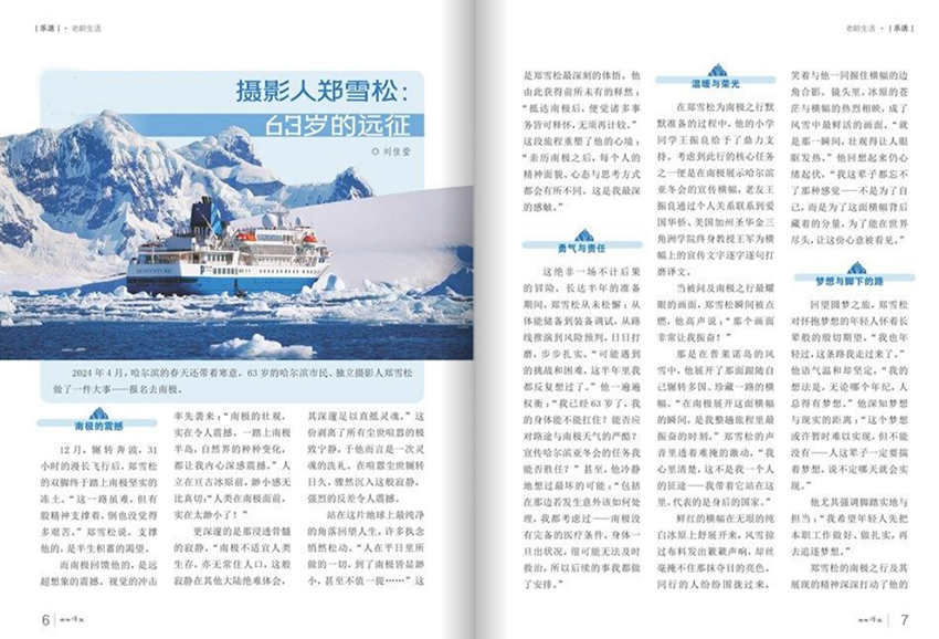 雜志不僅是一本雜志,更是一種生活態(tài)度的倡導(dǎo)者。它鼓勵(lì)中老年人保持內(nèi)心的“干凈”與“純粹”,常自省、常學(xué)習(xí),像法國思想家孟德斯鳩所說:“美必須干干凈凈、清清白白,在形象上如此,在內(nèi)心更是如此。”通過閱讀,老年人可以不斷豐富精神世界,實(shí)現(xiàn)“老有所學(xué)、老有所樂、老有所為”。