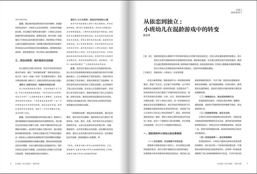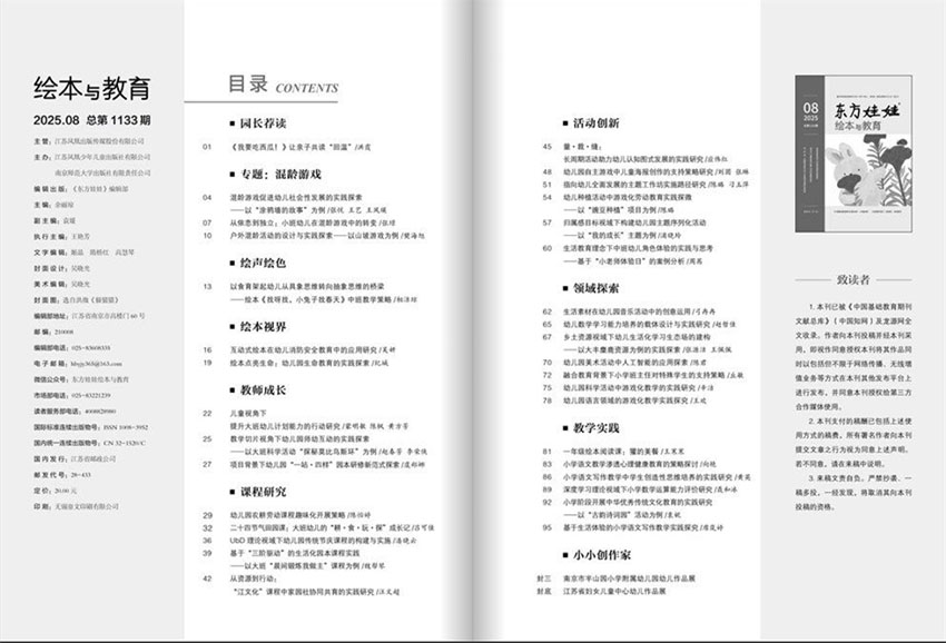 作為連接繪本藝術與學前教育的橋梁,《東方娃娃繪本與教育雜志》始終以“兒童為本”的教育理念為引領,通過圖文并茂的呈現形式、權威實用的專業內容、中西融合的文化視野,不僅為幼兒教育工作者提供了專業交流的平臺,也為家庭親子閱讀注入了科學指導,持續助力幼兒綜合素質的全面發展,成為學前教育領域兼具影響力與美譽度的標桿期刊。