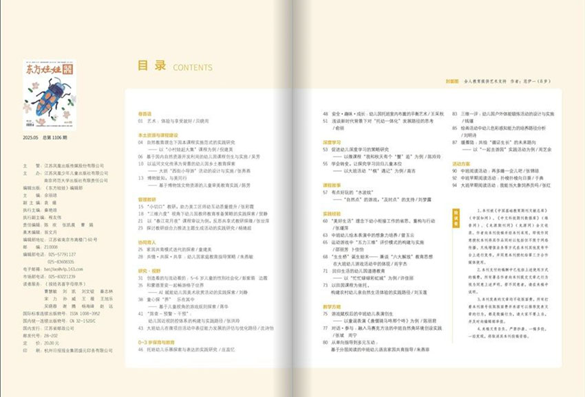 《東方娃娃保育與教育雜志》雜志秉承“扎根生活、陪伴成長”的核心理念,致力于傳播科學(xué)、前沿的早期教育思想與方法,是廣大家庭和幼教機(jī)構(gòu)信賴的育兒指南與專業(yè)資源。雜志內(nèi)容全面覆蓋兒童早期發(fā)展的關(guān)鍵領(lǐng)域,包括身體保育、營養(yǎng)健康、心理發(fā)展、行為認(rèn)知、情感與社會(huì)性培養(yǎng)等。它不僅提供權(quán)威的兒童發(fā)展心理學(xué)知識(shí),更注重理論與實(shí)踐的結(jié)合,通過大量真實(shí)生動(dòng)的案例、互動(dòng)游戲設(shè)計(jì)和家庭活動(dòng)建議,為讀者提供具操作性的育兒支持。 作為連接家庭與幼兒園的橋梁,該雜志特別關(guān)注家園共育。它為家長解析孩子成長中的困惑與挑戰(zhàn),也為幼教工作者提供豐富的教學(xué)資源和課堂活動(dòng)方案,促進(jìn)教育理念的同步與協(xié)作。其內(nèi)容深入淺出,既具專業(yè)性又不失親和力,能有效滿足不同讀者的多元需求。