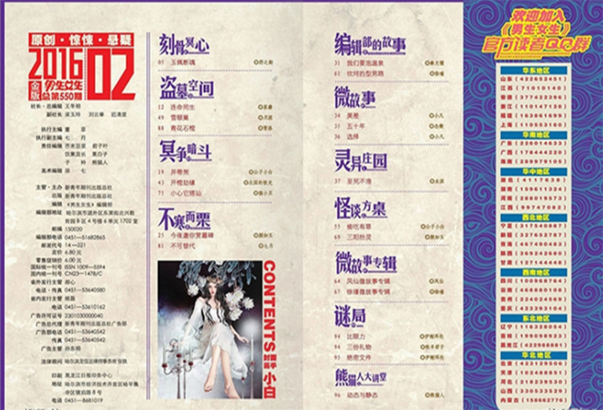《金版懸疑》以硬核恐怖、奇幻玄異題材為主,涵蓋穿越、靈異、新武俠等類型,每期80頁全彩印刷,搭配特約漫畫家創(chuàng)作的驚悚插圖,營造沉浸式閱讀體驗。代表欄目如“鬼味少女”系列、“四方角招魂”等長篇連載,以多線敘事與人性反轉(zhuǎn)引發(fā)讀者熱議。《銀版青春》則聚焦校園情感、時尚娛樂與心理成長,設置“TOP賞原創(chuàng)小說”“時尚美容指南”“心理測試工坊”等欄目,通過96頁精致排版與原創(chuàng)漫畫,傳遞青春正能量。月末版作為泛幻想閱讀志,自2009年推出后,以“圣米大陸”世界觀為框架,收錄玄幻、熱血、言情等類型小說,力邀圈內(nèi)頂尖畫手定制插圖,打造沉浸式異世界體驗。 雜志月發(fā)行量突破50萬冊,郵發(fā)代號覆蓋全國,市場占有率連續(xù)多年位居青少年期刊榜首。讀者調(diào)研顯示,85%的受訪者認為其內(nèi)容“貼近青少年心理”“兼具娛樂性與啟發(fā)性”,60%的讀者表示通過雜志結識同好,形成跨地域的讀者社群。2013年推出的“讀者票選獎勵制度”,進一步激發(fā)創(chuàng)作活力,優(yōu)秀稿件稿酬提升至150元/千字,吸引大量新生代作家投稿。