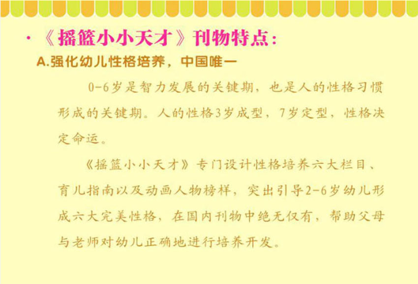 四十余年發展中,《搖籃小小天才》始終堅守“塑造美好人生,贏在起跑線上”的初心,以專業的教育理念和豐富的內容形式,成為連接幼兒成長與家庭早教的重要紐帶。無論是作為親子共讀的溫馨載體,還是幼兒自主探索的啟蒙工具,這本雜志都以其科學性與趣味性的完美融合,持續為中國幼兒的成長注入養分。