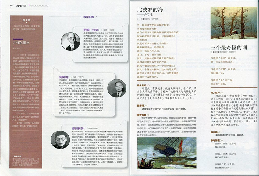 除了應試指導,雜志更注重考生閱讀素養(yǎng)的長期培育。“名家經(jīng)典悅讀”欄目精選魯迅、沈從文、史鐵生等文學名家的經(jīng)典篇目,輔以賞析評論,引導考生感受文字之美,提升文學鑒賞能力;“時文熱點聚焦”則緊扣社會熱點,選取《人民日報》《光明日報》等權威媒體的評論文章、深度報道,幫助考生拓寬視野,積累論述類文本閱讀素材,同時培養(yǎng)辯證思維能力。此外,“古詩文積累與賞析”板塊通過“古詩文原文+白話翻譯+名句解讀+文化常識”的形式,助力考生攻克古詩文閱讀難點,夯實傳統(tǒng)文化基礎。