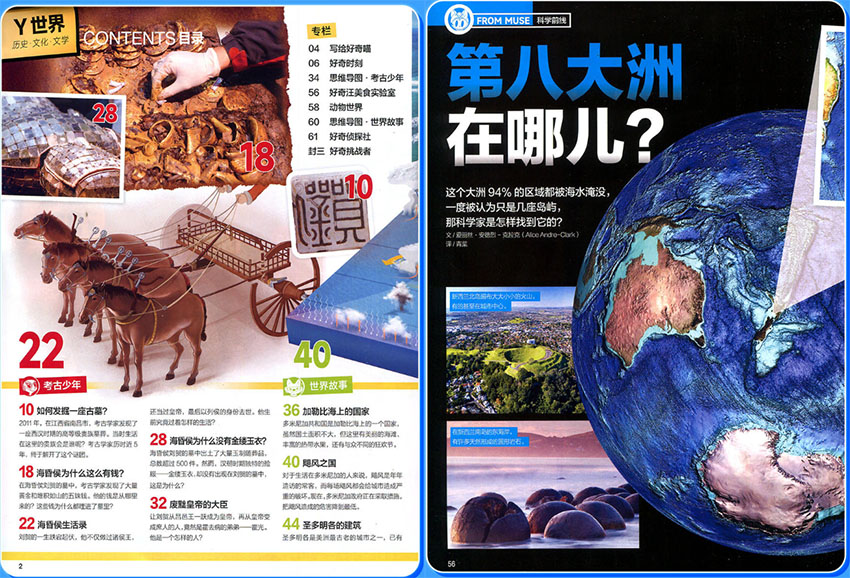 《好奇號》的內容精選自Cricket Media旗下五大王牌刊物——Muse(科學)、Faces(世界文化)、Dig(考古)、ASK(兒童科學)、Cricket(文學),涵蓋科學、技術、自然、歷史、文化、文學六大領域。每期128頁超大容量,包含“X星球”(科學探索)與“Y世界”(人文歷史)兩冊主刊,以及32頁中英雙語兒童文學讀物。其內容團隊由科學家、歷史學家、兒童文學作家組成,確保知識權威性與趣味性并存,曾獲美國父母選擇獎金獎、全美雜志大獎等14項國際大獎。