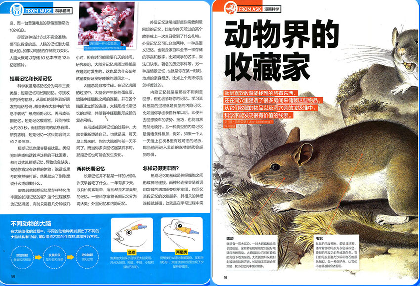 雜志采用“雙刊+雙語”的創新形式:每月出版《X星球》(聚焦科學、自然、技術)與《Y世界》(深耕歷史、文化、文學)兩冊,并附贈中英雙語文學小冊子。內容設計以主題式探索為核心,如“極端環境下的生命奇跡”“宇宙探索”等專題,通過漫畫故事、科學家手記、互動實驗等多元形式,將抽象知識具象化。銅版紙全彩印刷搭配生動插圖,輔以音頻資源和思維導圖,構建“眼腦耳并用”的沉浸式閱讀體驗,讓孩子從被動接收轉為主動探索。