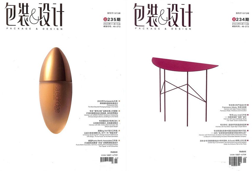 《包裝&設計》(雙月刊)經過多年的不懈努力,流行度高,大眾辨識度廣,創刊于1973年,開拓了視野,帶給讀者富有生活特色的內容。一本具有多年歷史、在全國設計界和設計院校中極具影響力的專業雜志,多年來為中國包裝和設計事業的發展以及中外設計師之間的交流不遺余力。