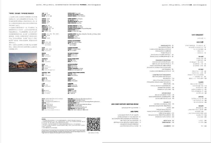 《城市環境設計》(雙月刊)經過多年的不懈努力,流行度高,大眾辨識度廣,創刊于2004年,開拓了視野,帶給讀者富有生活特色的內容?!冻鞘协h境設計》洞悉國內外當代建筑,剖析建筑與城市環境,適讀人群:白領、設計師、收藏家、企業家、美工、環保主義者、建筑師等,建筑在光影交錯,空間轉換中探尋。這十年之間TAO的作品聯絡,也能看到某些點不斷在重復著,又不斷地向其他新的關系延伸,既復雜多元,又始終不偏離本身。