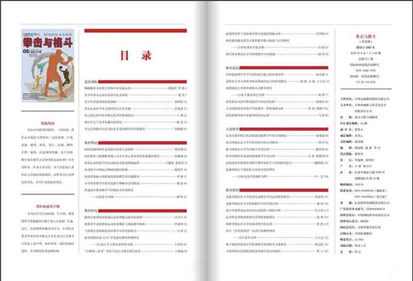 《拳擊與格斗》雜志是中國最早、最專業的拳擊、散打、自由搏擊等綜合搏擊運動專業類雜志之一。該雜志旨在為全國廣大搏擊愛好者提供相關領域的最新信息,包括賽事報道、選手訪談、技巧指導、培訓講座等內容,同時也為專家學者、訓練教練員和從業者提供了交流平臺和知識分享資源。雜志通過不斷積累和發展,成為行業的權威雜志,被廣大搏擊愛好者和相關領域專家所廣泛認可和推崇。