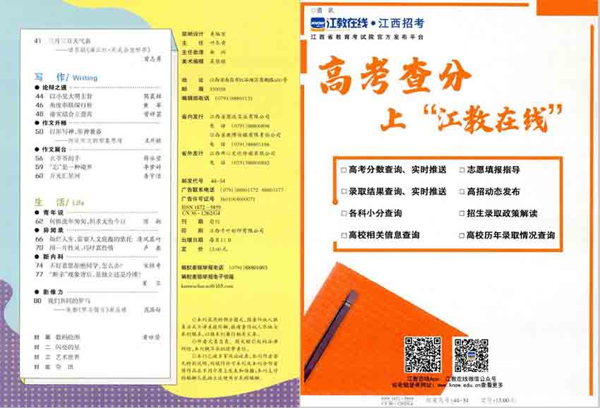 全年一共12期,旬刊,單期48頁,彩色銅版紙。出版單位:江西教育期刊社有限責任公司
