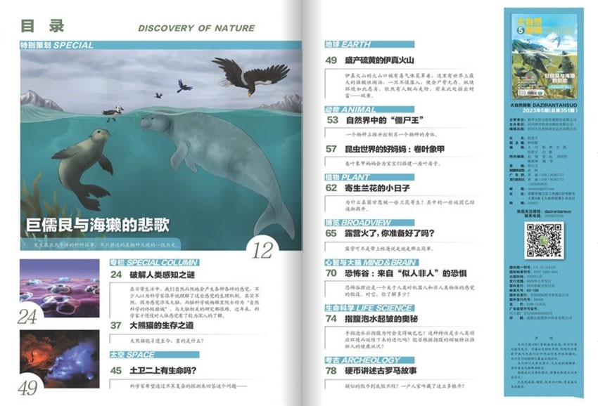 雜志深入淺出、娓娓道來地為讀者提供最新的科普知識,呈現自然界最美好、最神秘的一面,引領讀者向大自然敞開心扉,向讀者傳達大自然的奧秘和科學知識,深度探索自然中的規律和秘密,提升我們的文化素養和思維深度,讓人們更好地了解和探索自然界,增強人們對自然生態環境的保護意識。