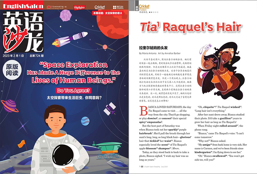 她最早將“寓教于樂”的思想和形式用于英語學習,改變了英語學習死記硬背單詞和語法的一貫模式,開創了快樂學習的全新體驗。本刊三個版本的共同點是集知識性、實用性和趣味性于一體,用英漢雙語流暢地描繪大千世界,既滿足了當今青年走向世界的迫切欲望,又幫助青年學子為成材打下堅實的英語功底。本刊主要面向具備一定英語功底的中學生;由于選材面廣,因而亦有助于大學生和部分白領階層增長見識和博覽世界。