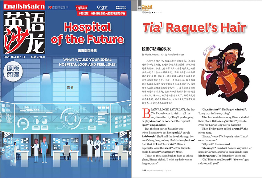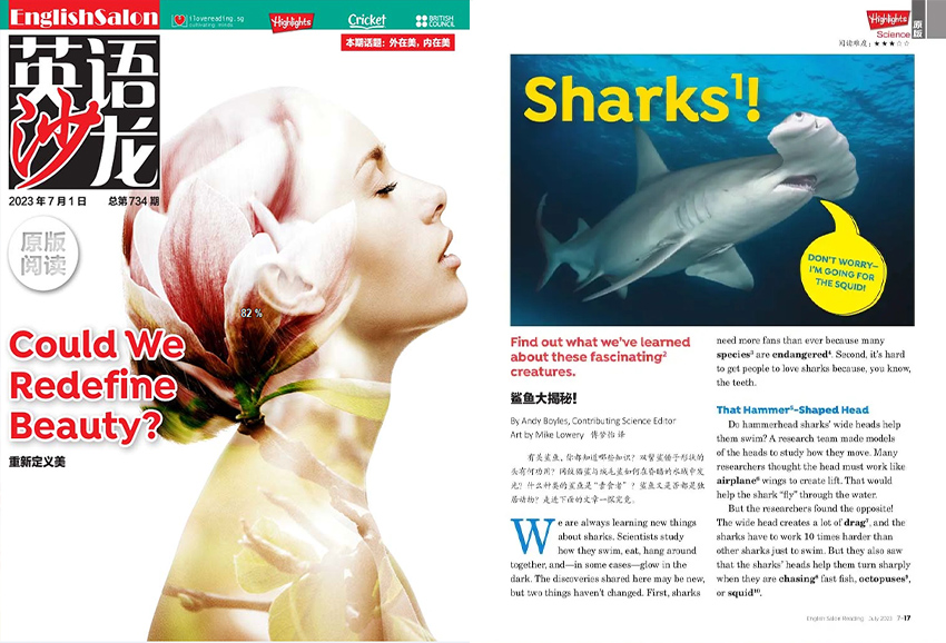 《英語沙龍》主要欄目:HIGHLIGHTS、SOCIAL STUDIES、CRICKET、AMERICAN CAMPUS、BRITISH COUNCIL等。